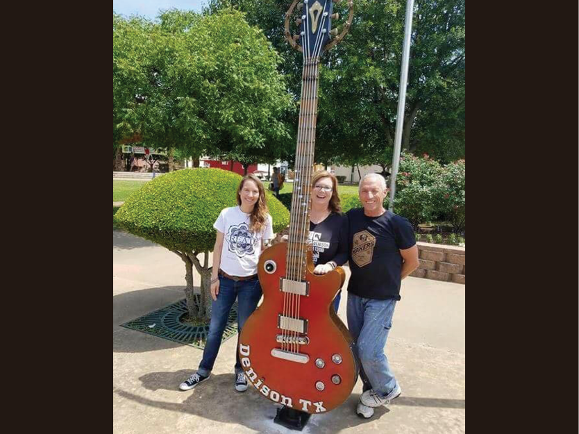 Denison_guitar-4×3 ← Previous Next → Larger-than-life guitar by 413 Makers (2017) near Heritage Park, home to Levitt AMP Denison (Denison, TX)