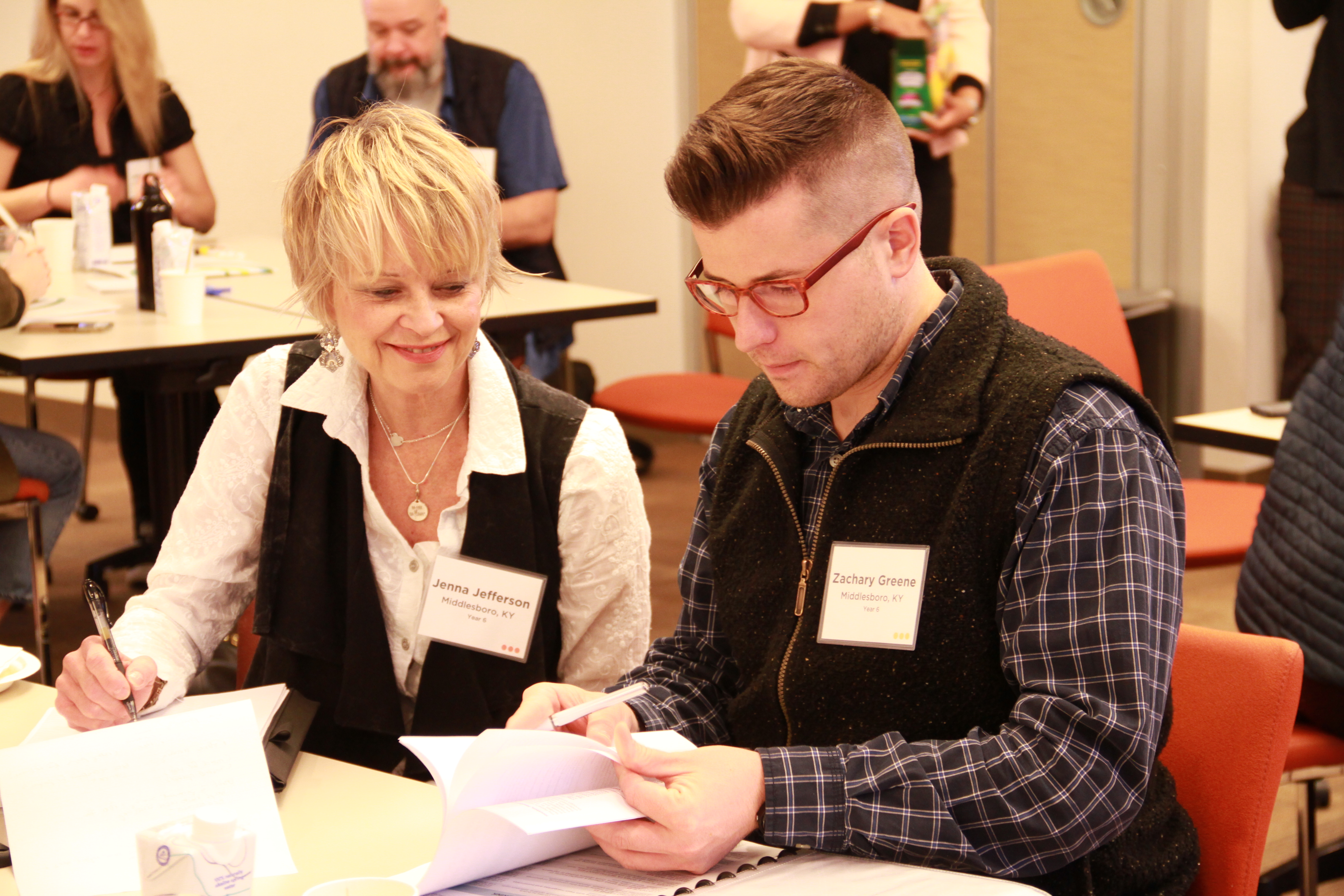 IMG_8952 ← Previous Next → (L to R) Jenna Jefferson and Zachary Greene (both of Middlesboro, KY) brainstorm ideas for an activity.